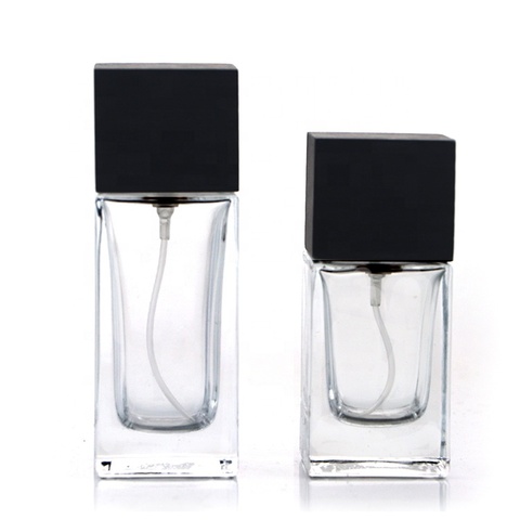 High End Perfume Spray Bottle 30ml 50ml Rectangular Elegant Perfume Glass Bottle With Wooden Cap